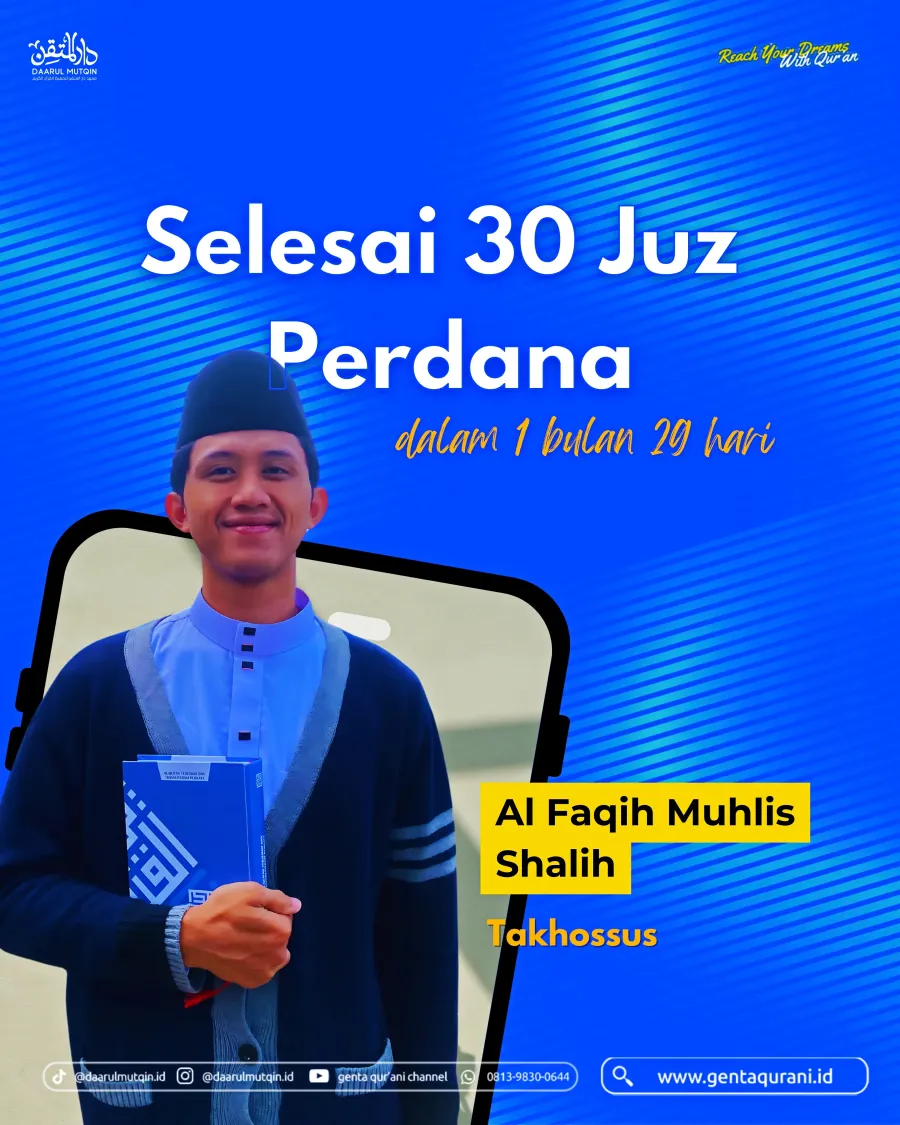 21 Februari 2025, santri kami Al Faqih Muhlis Shalih telah menyelesaikan setoran 30 Juz Al-Qurโan (20 putaran) dengan penuh dedikasi dan keistiqomahan. Perjalanan panjang dalam menghafal ayat-ayat suci kini berbuah manis, namun ini bukanlah akhir, melainkan awal dari perjalanan menjaga, memahami, dan mengamalkan kalam-Nya.